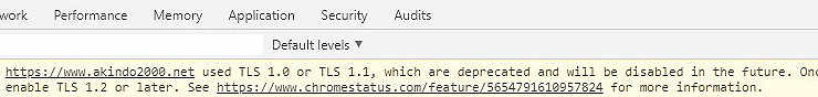 The connection used to load resources from https://www.akindo2000.net/ used TLS 1.0 or TLS 1.1, which are deprecated and will be disabled in the future. Once disabled, users will be prevented from loading these resources. The server should enable TLS 1.2 or later.