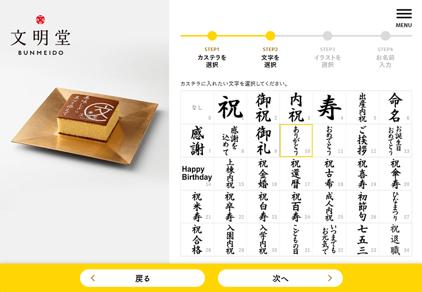 また、好きな文字とイラストを選んで作る「名入れカステラ」では