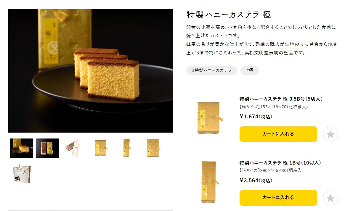 浜松文明堂様のECサイトでは、一般的な「商品詳細ページ→カートへ」という流れではなく、カテゴリーページからサイズ違いの商品を直接購入できる構成にする必要がありました。