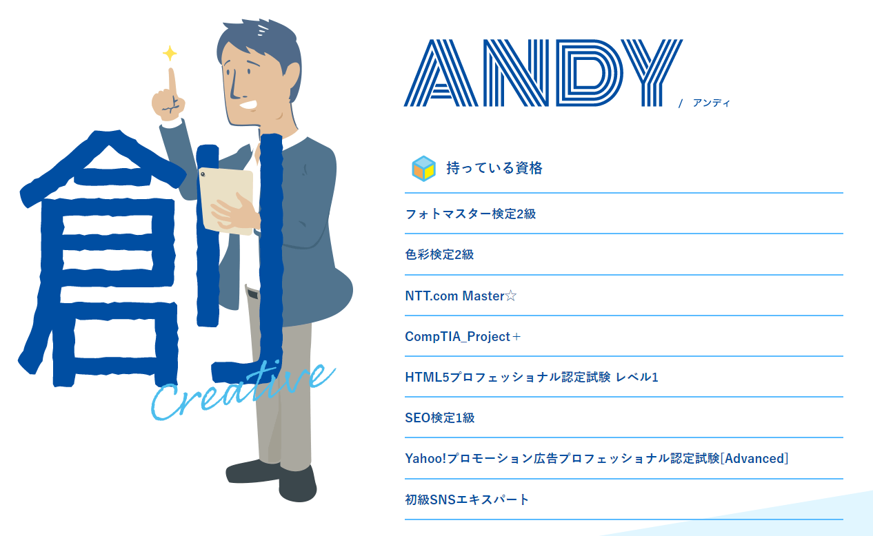 パターン1 人柄を文字+イラストで表現して楽しげな雰囲気に。