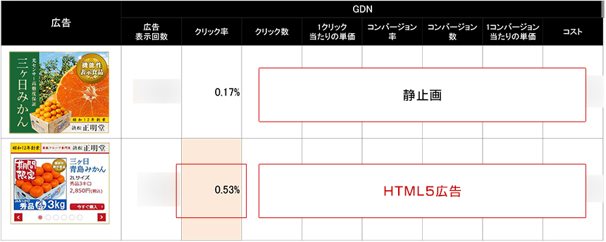 クリック率が静止画に比べ、なんと約3.1倍アップと予想をはるかに上回る結果となりました。