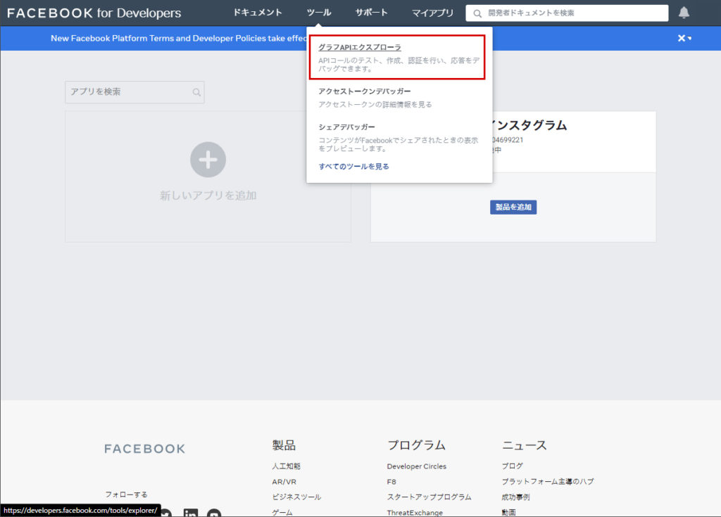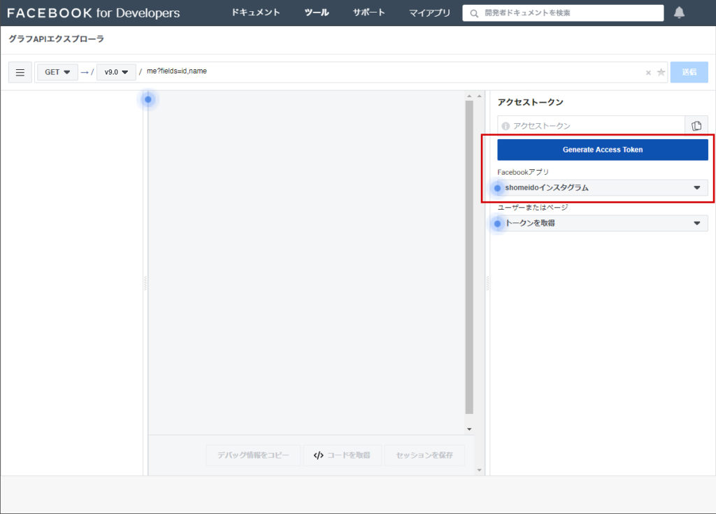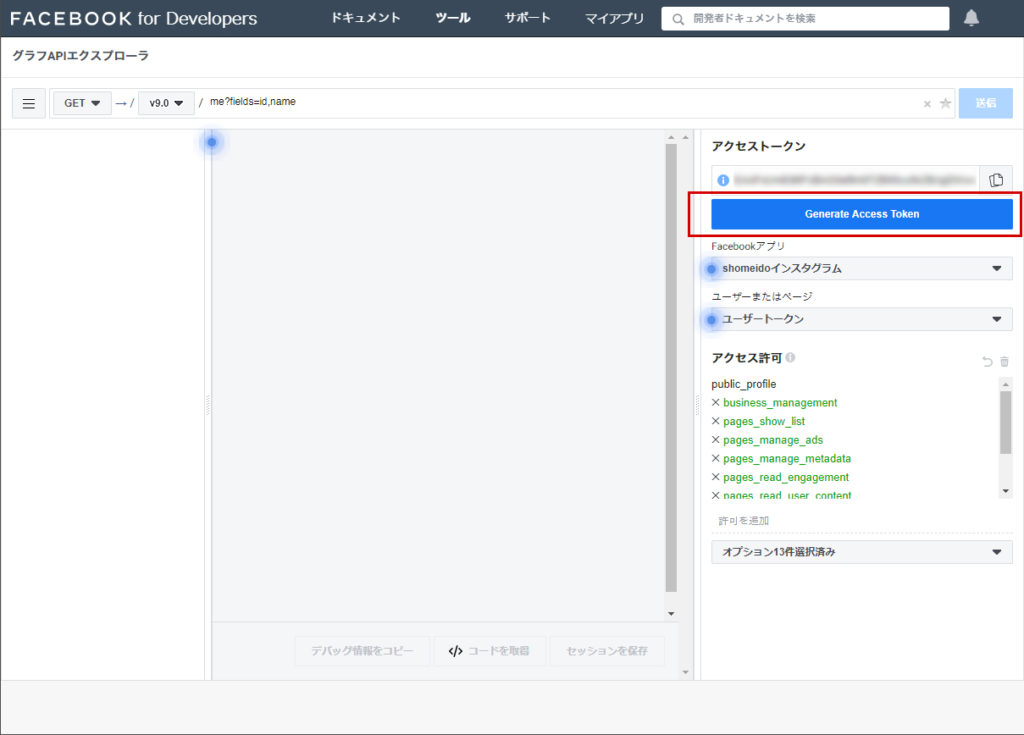 1.有効期限2か月のアクセストークンをコピーして、再度グラフAPIエクスプローラを開きます。