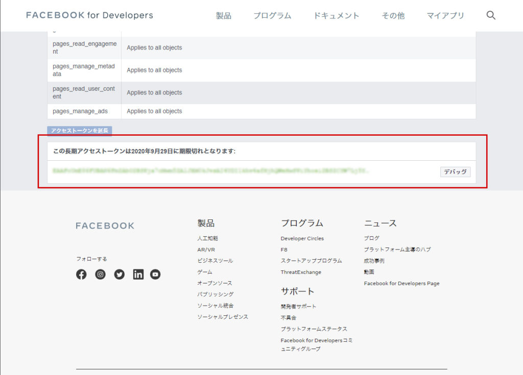 1.少しスクロールすると、「アクセストークンを延長」というボタンがあるのでクリック。