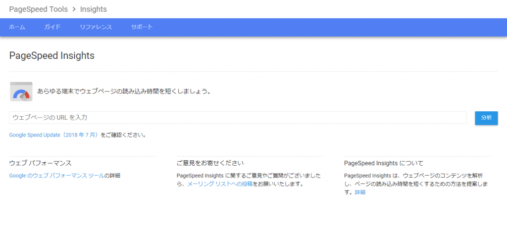 スピードチェックツールについて、Googleが無料で提供してる「PageSpeed Insights」があります。