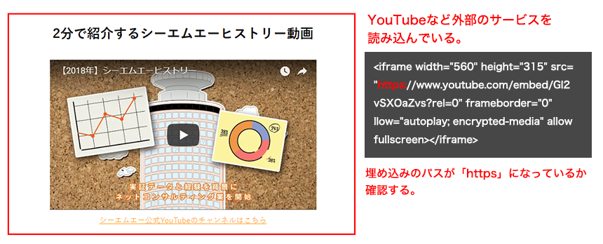 httpから始まるURLで読み込んでいる場合、httpsに変更してください。