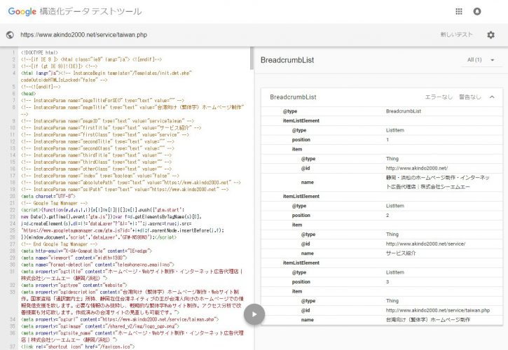以下のソースは弊社のページ(第二階層)を構造化マークアップしたものです。