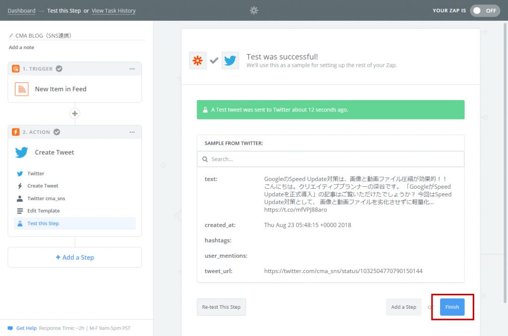 続いて「RSS」から「Twitter」へACTION設定に移ります。