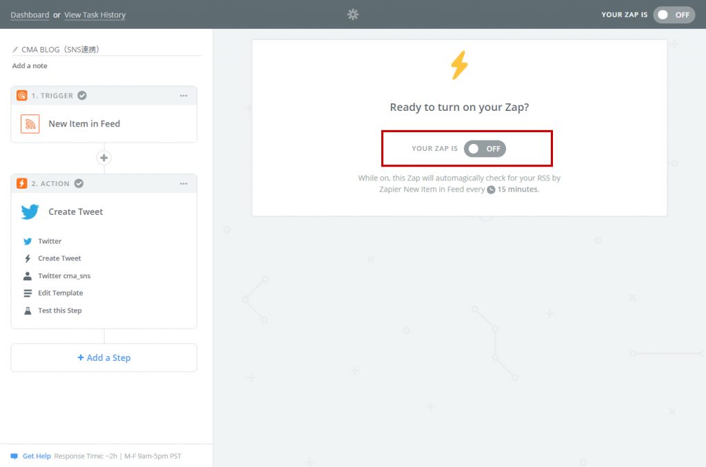 最後にYOUR ZAP ISの「OFF」を「ON」に設定し完了。