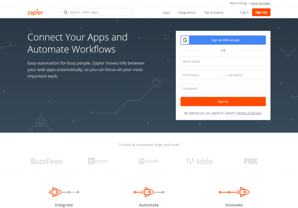 1000種類以上のWebアプリケーションと連携可能で、無料プランも用意されています。