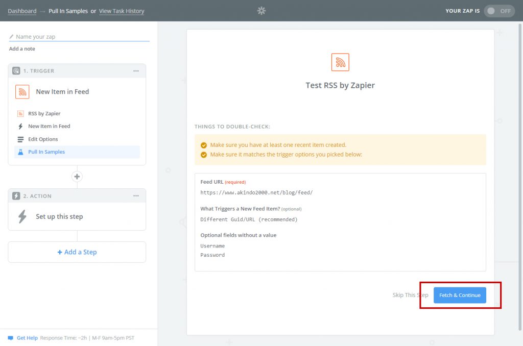正常に読み込めたら、「Fetch&Continue」をクリック。