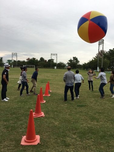 大人の身長よりも大きい巨大ビーチバレーを行いました。