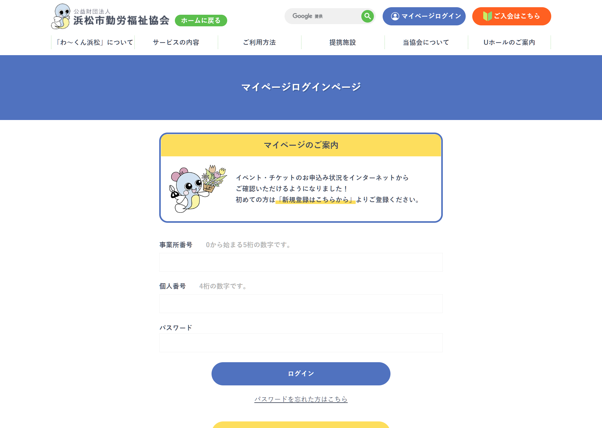 浜松市勤労福祉協会(わ~くん浜松)様 マイページシステム