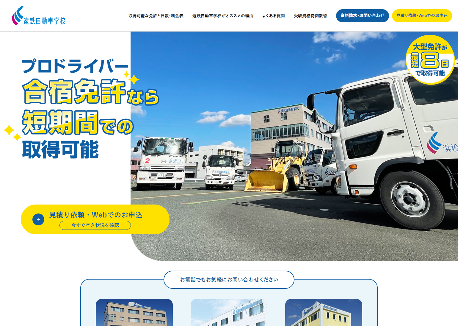 制作実績を更新いたしました!遠鉄自動車学校様 プロドライバー合宿免許訴求LP【静岡県浜松市】