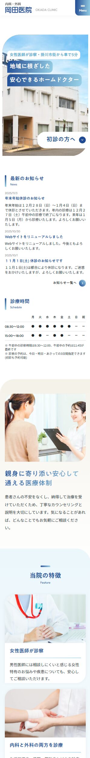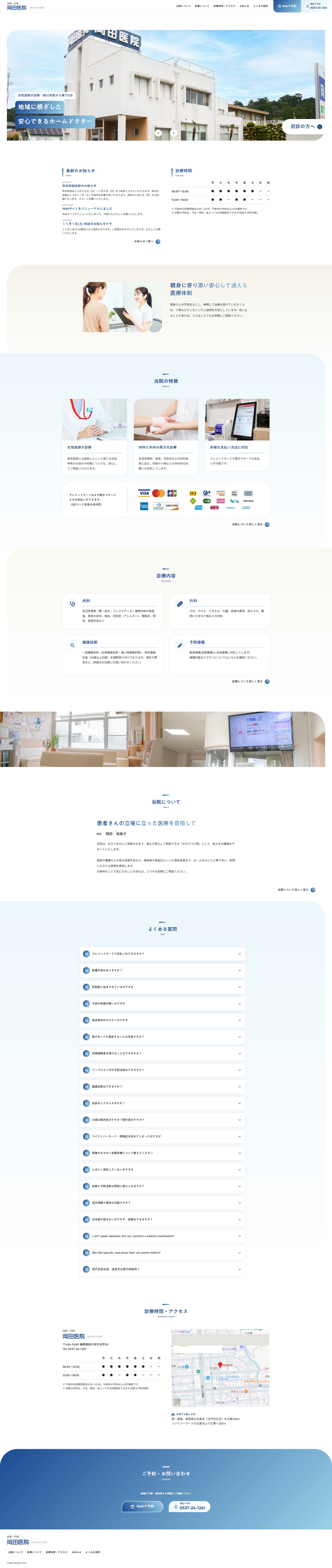 開院50年を超える歴史を持つ岡田医院様は、掛川市にある内科・外科のクリニックです。女性医師が診察を担当し、お子様からご高齢の方まで、誰もが安心して相談できる「かかりつけ医」として地域に貢献されています。