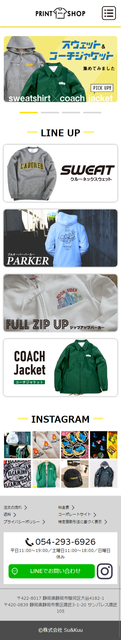 株式会社Su&Kuu様 オリジナルスウェット、コーチジャケット作成サイト
