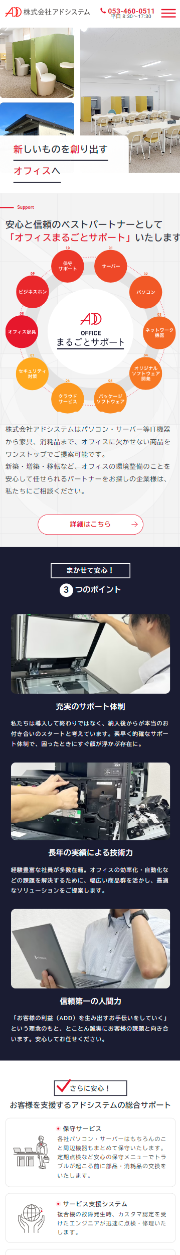 アドシステム様は静岡県浜松市で法人向けのパソコン・サーバー等IT機器、オフィス家具・消耗品など幅広い製品の販売・保守サポートをおこなっています。